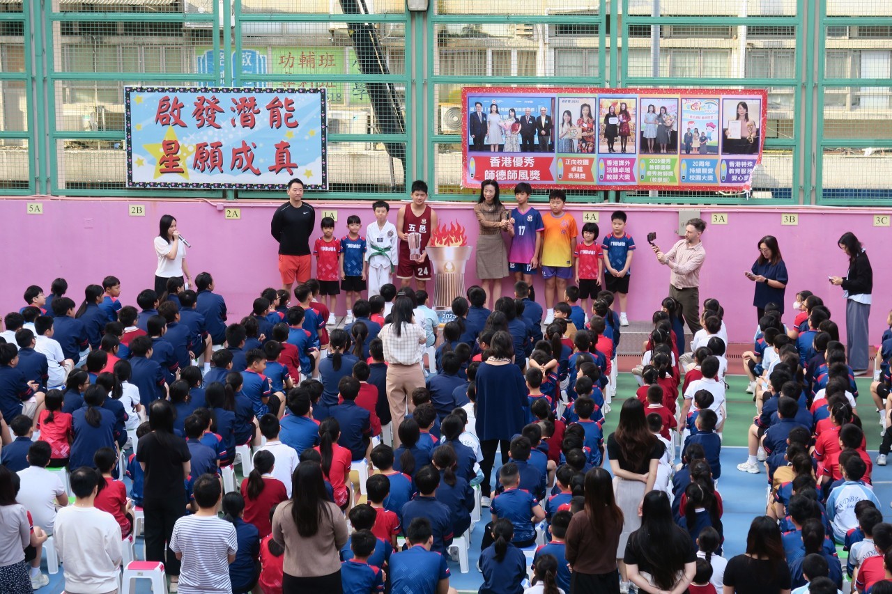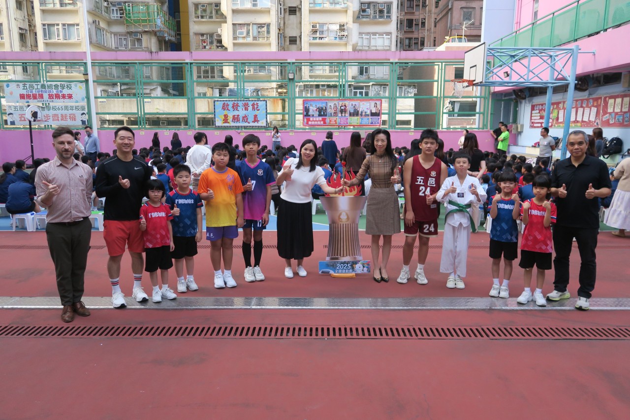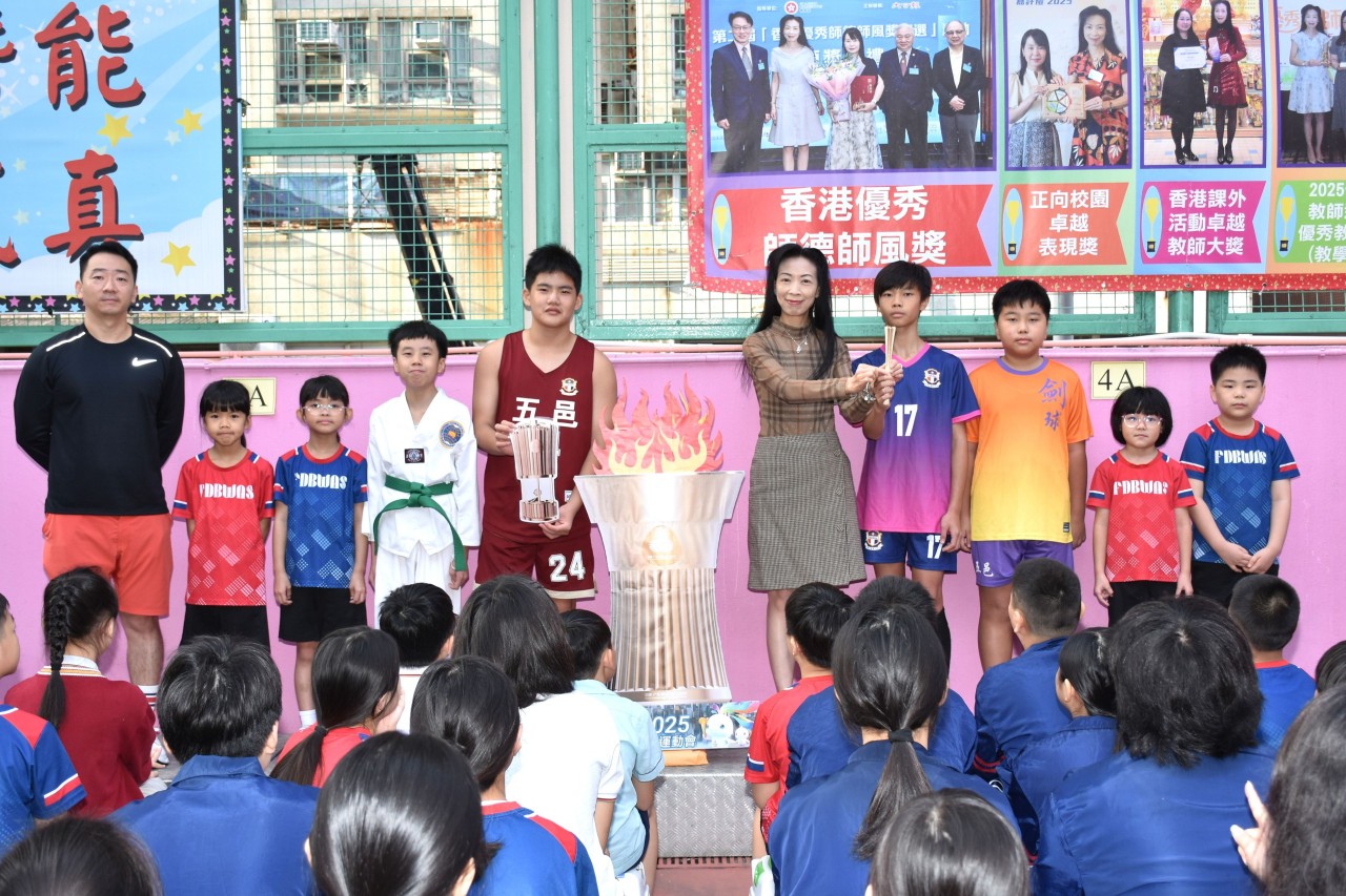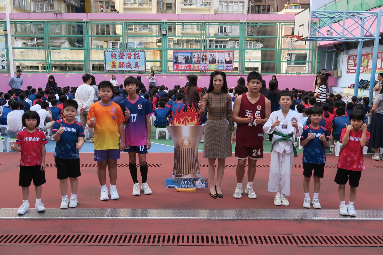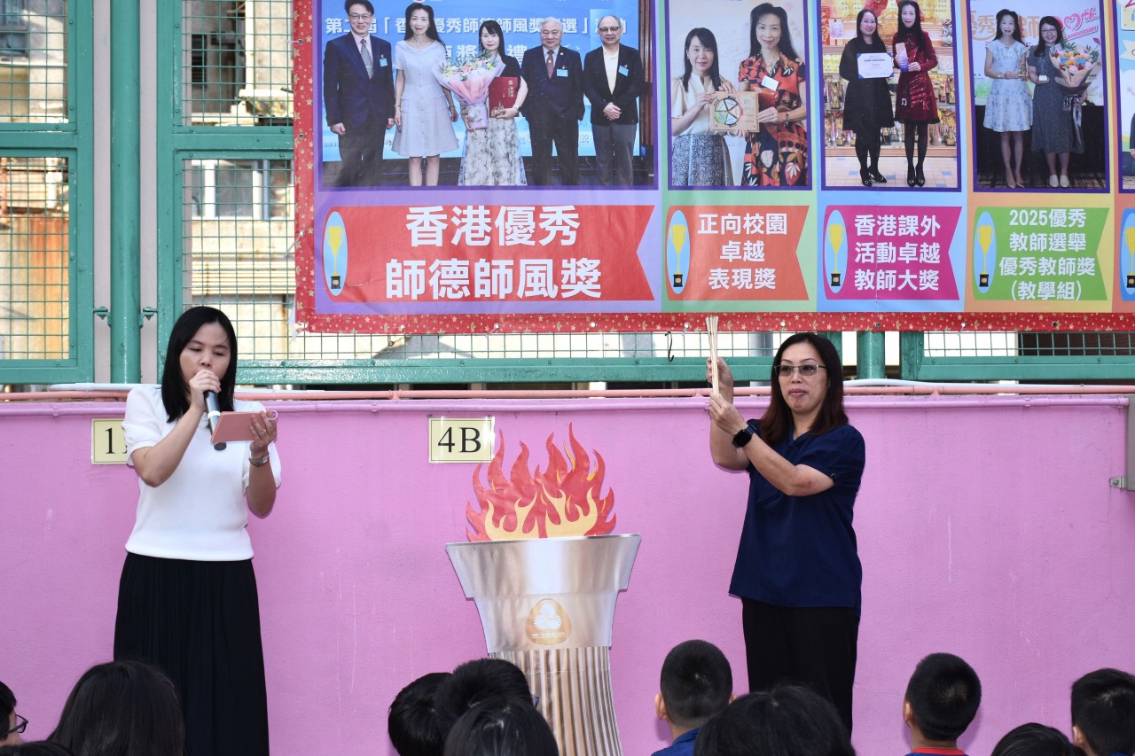 2025-11-10 舉行日期:2025年11月10日活動名稱︰「火炬傳遞」活動 活動詳情︰為響應全運會並傳承體育精神,學校舉辦了「火炬傳遞」活動。劍球、跆拳道、籃球和足球的精英運動員擔任「小小火炬手」,現場氣氛熱鬧非凡!