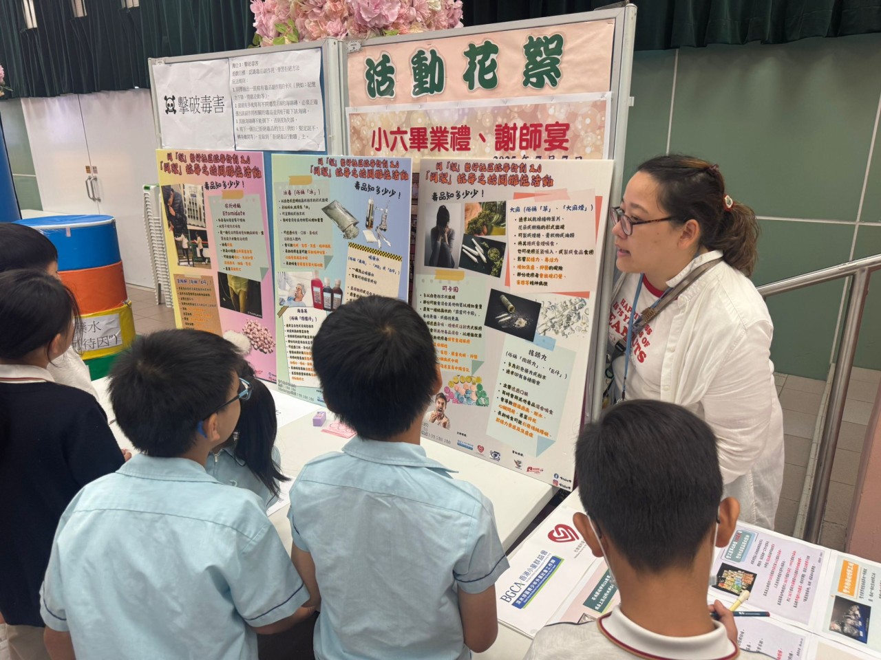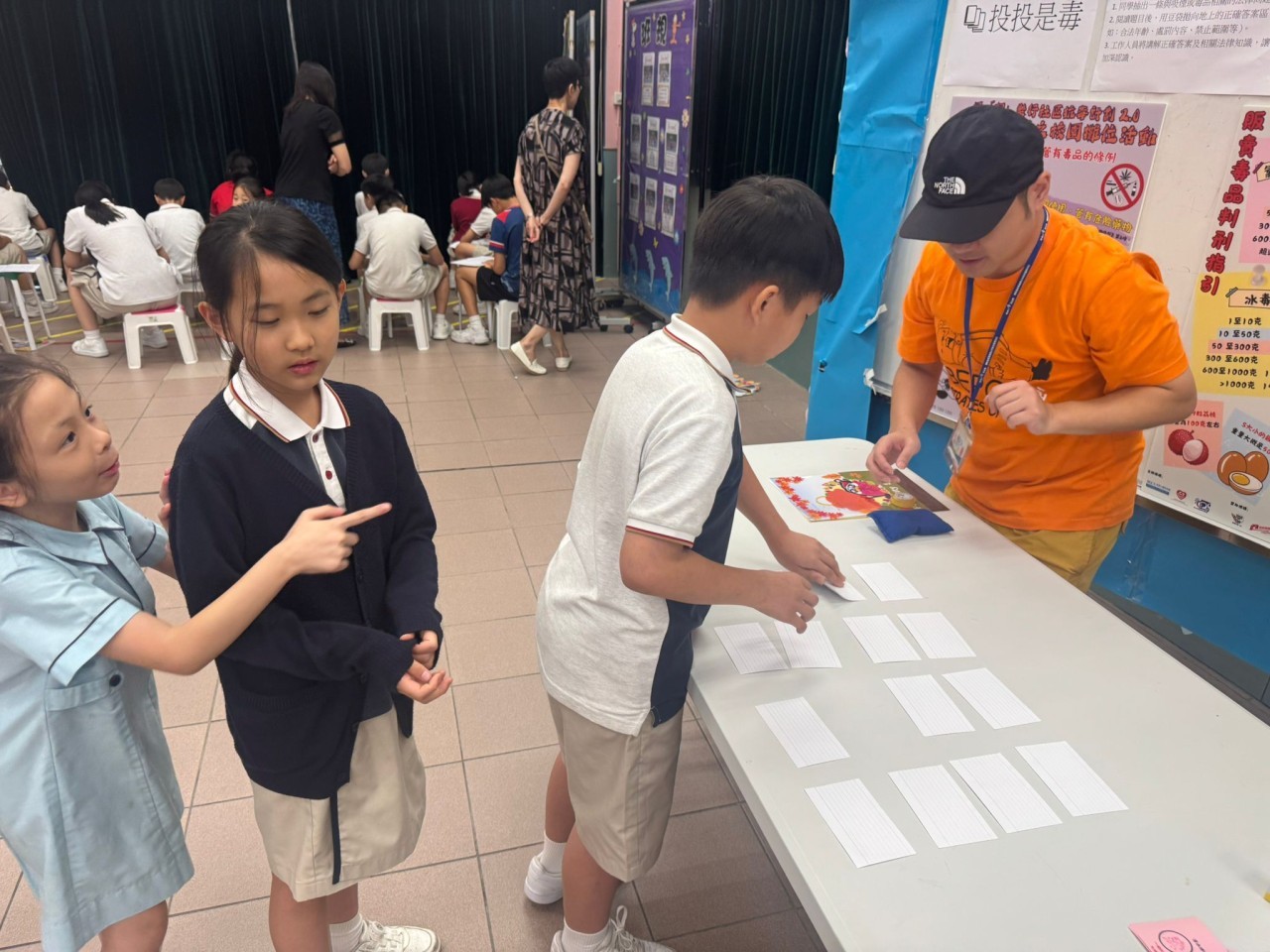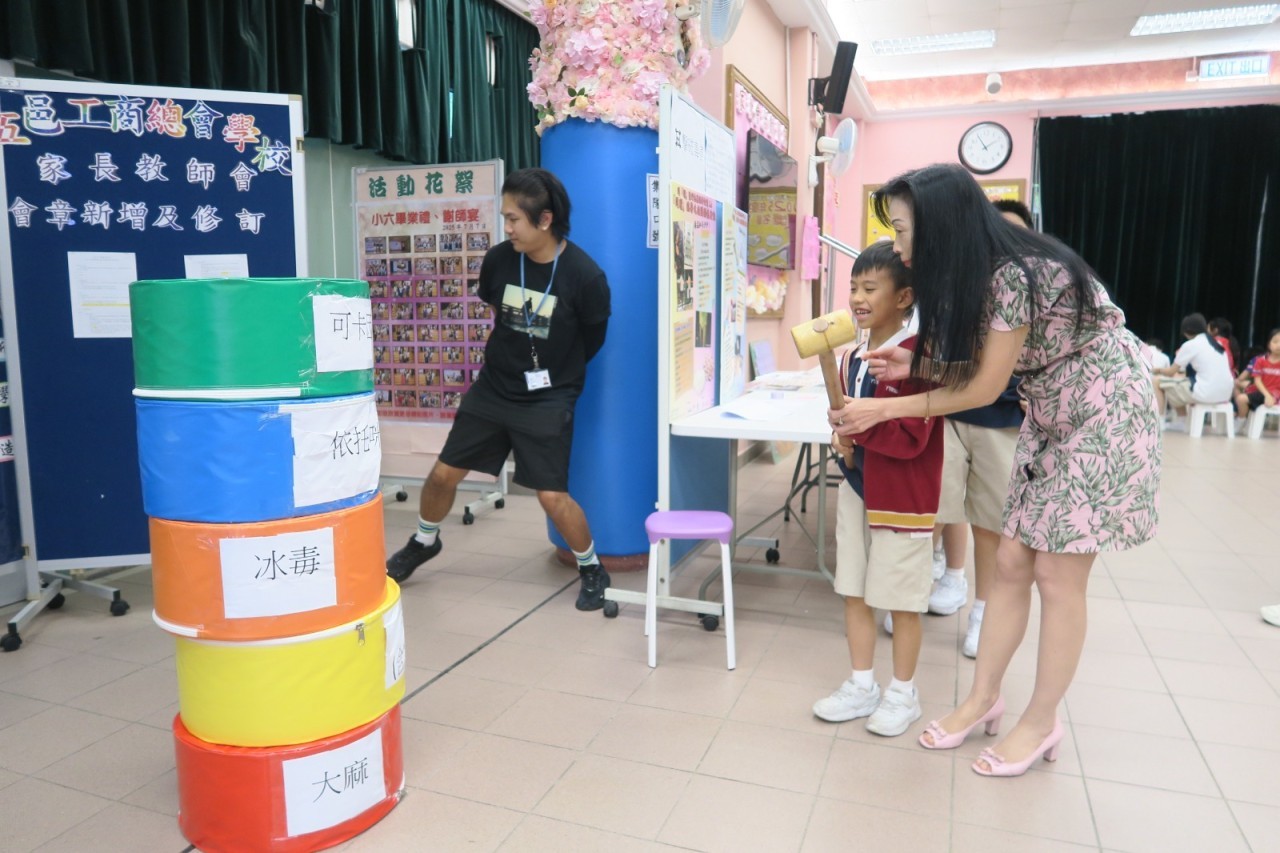 2025-09-25 舉行日期:2025年9月25日活動名稱︰抗毒校園攤位 活動詳情︰本校邀請了小童群益會社工到校為四年級學生舉辦抗毒校園攤位,宣傳健康生活的信息,同學都十分投入,透過遊戲提高到毒品的警覺性。