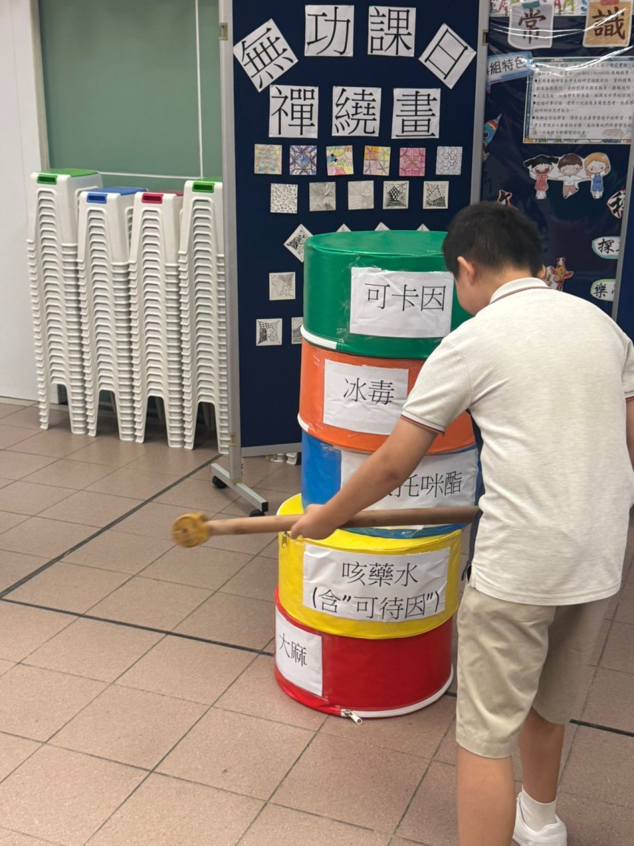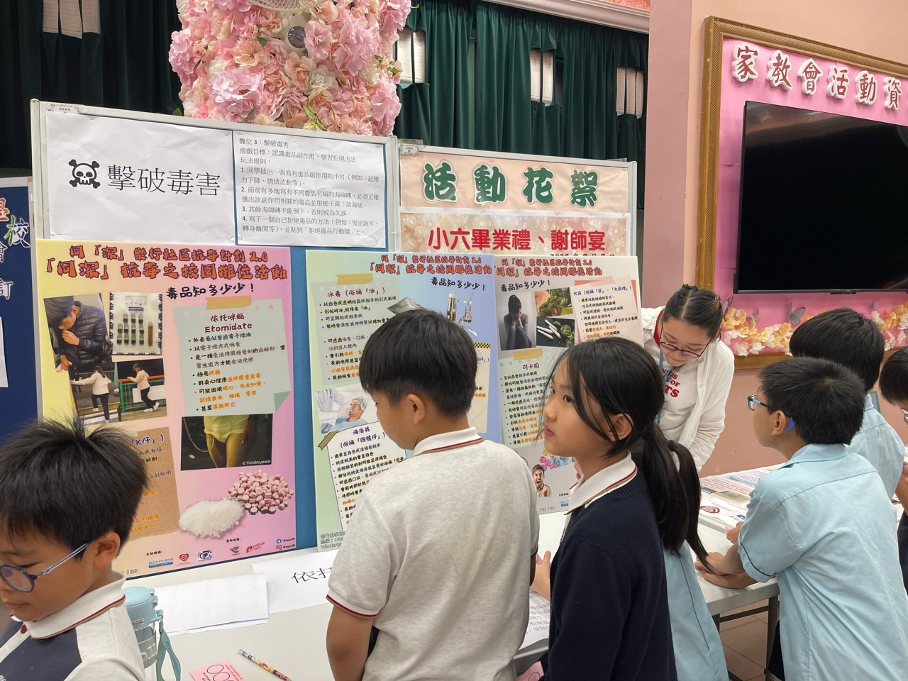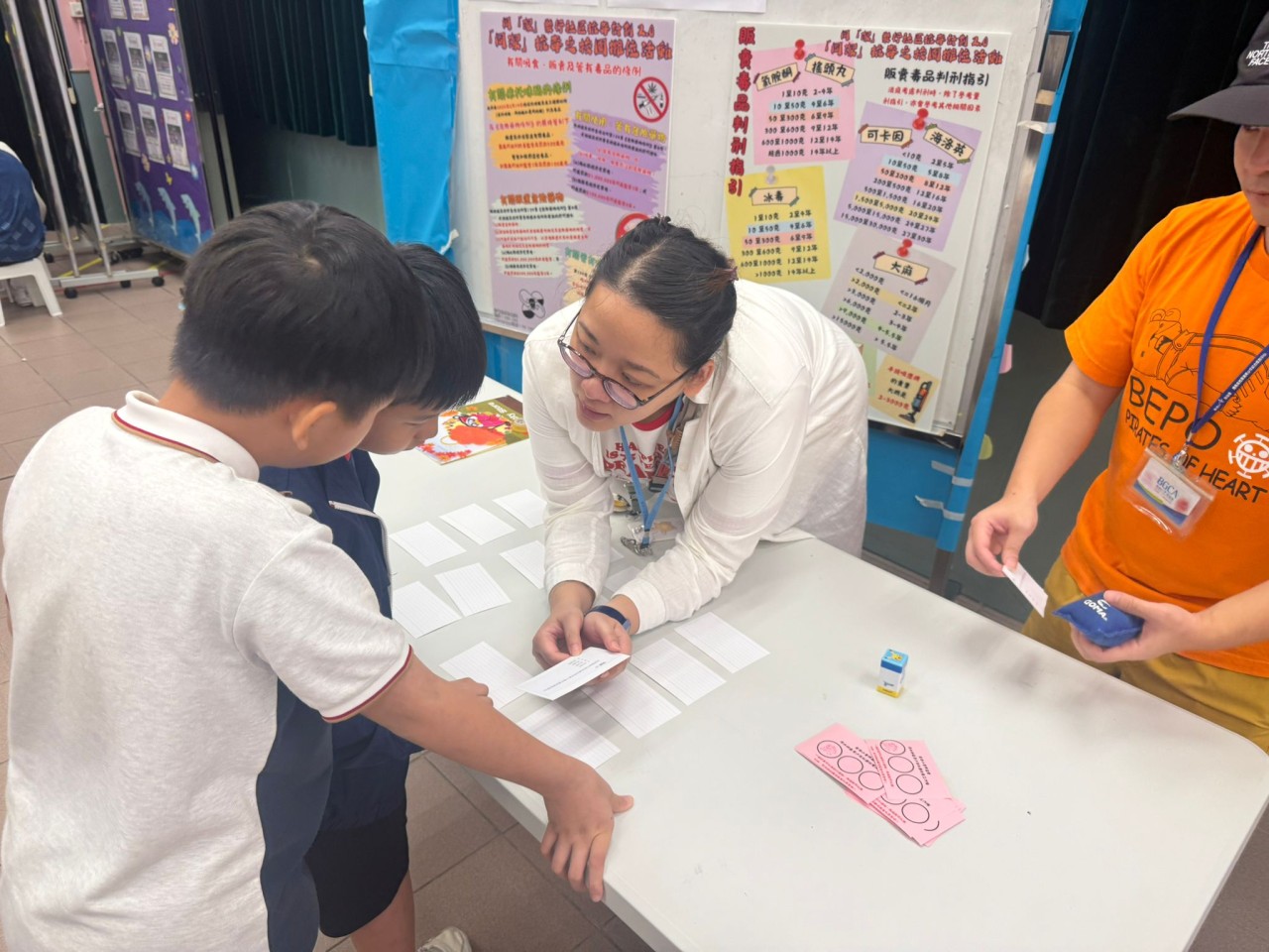 2025-09-25 舉行日期:2025年9月25日活動名稱︰抗毒校園攤位 活動詳情︰本校邀請了小童群益會社工到校為四年級學生舉辦抗毒校園攤位,宣傳健康生活的信息,同學都十分投入,透過遊戲提高到毒品的警覺性。