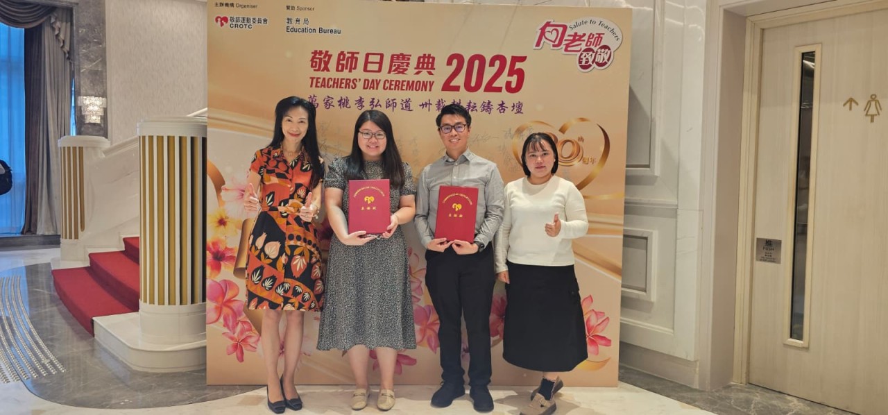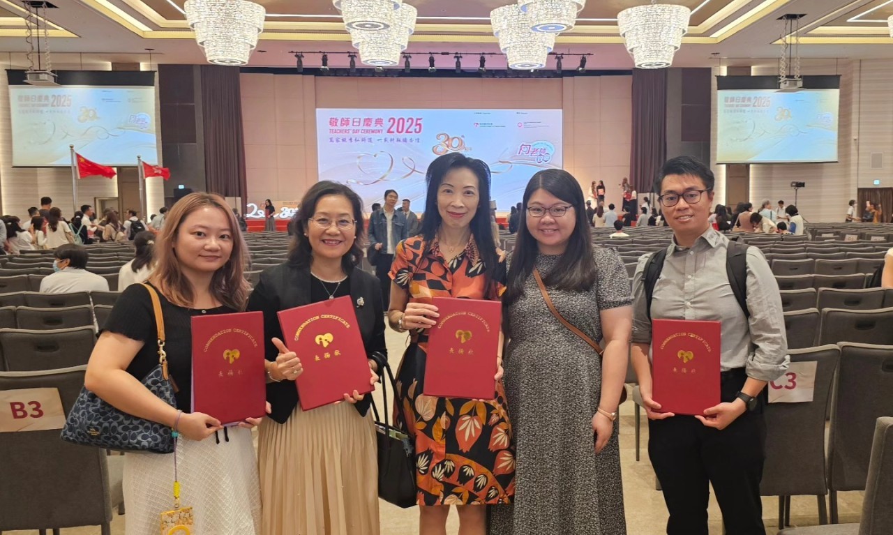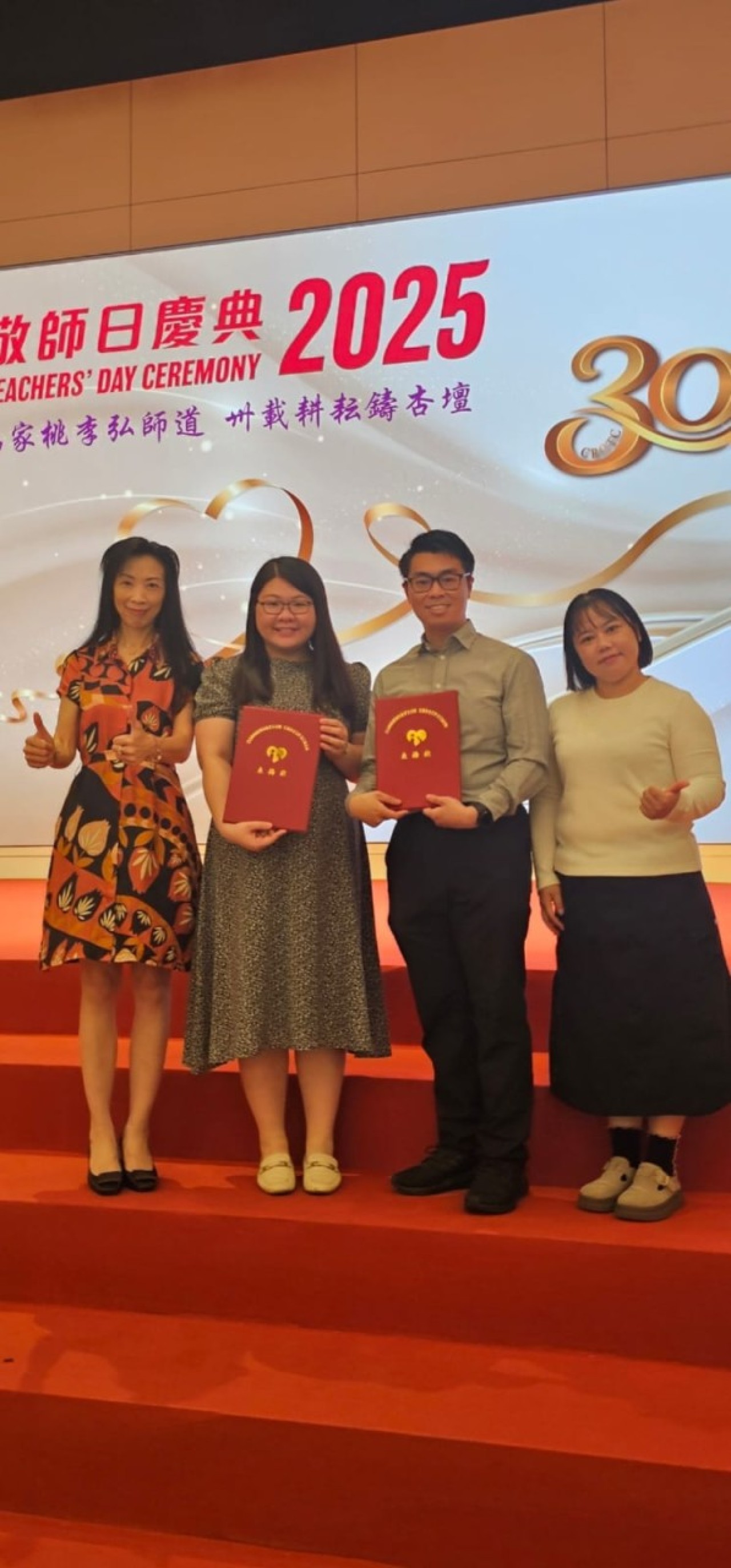 2025-09-26 舉行日期:2025年9月26日活動名稱︰敬師日典禮2025 活動詳情︰香港敬師運動委員會舉辦了「向老師致敬2025─敬師日慶典」,恭賀本校兩位教師在「第30屆表揚教師計畫」中獲獎。家教會譚主席親臨現場祝賀,令人倍感欣喜!