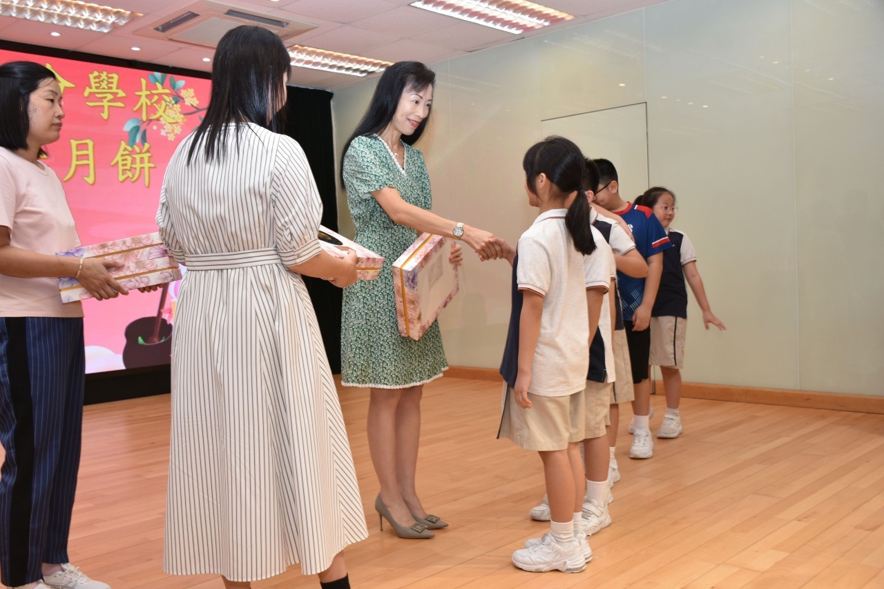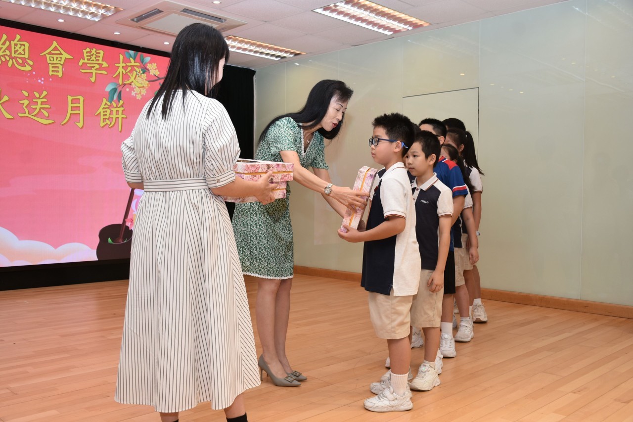2025-10-02 舉行日期:2025年10月2日活動名稱︰校友中秋送月餅行動 活動詳情︰每年中秋節,本校校友會創會主席陳幗芬女士不忘捐贈月餅給她的學弟學妹,以表達對他們的關愛。這些月餅由宗校長親自頒贈給各班班長,以鼓勵他們為同學服務。