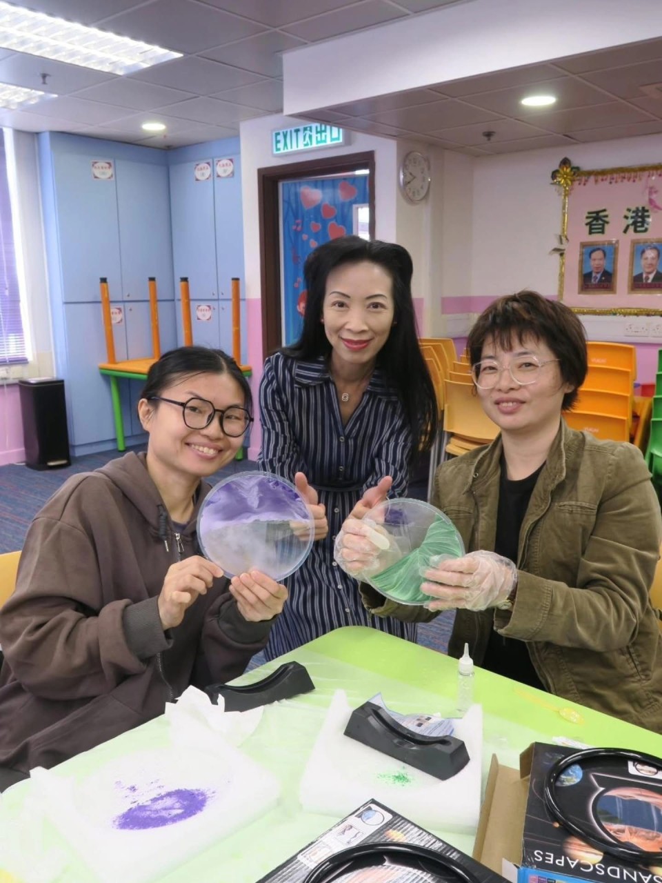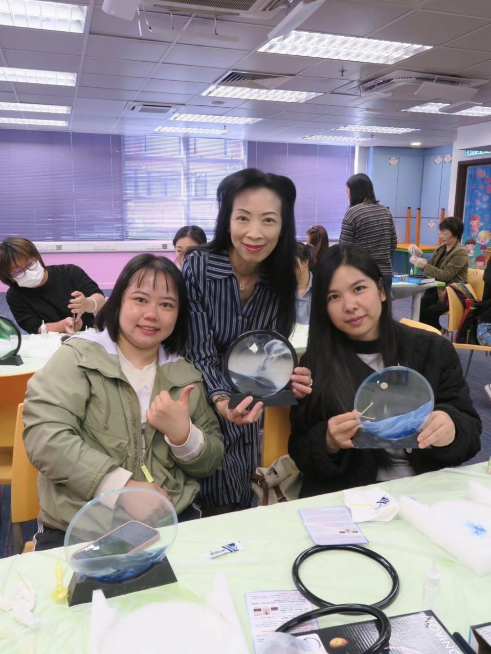 2025-11-25 舉行日期:2025年11月25日活動名稱︰沙畫擺設製作家長工作坊 活動詳情︰為了讓家長舒展心情,本校舉辦沙畫擺設製作家長工作坊。家長們一邊動手創作、一邊交流親職經驗,氣氛溫馨而愉快!