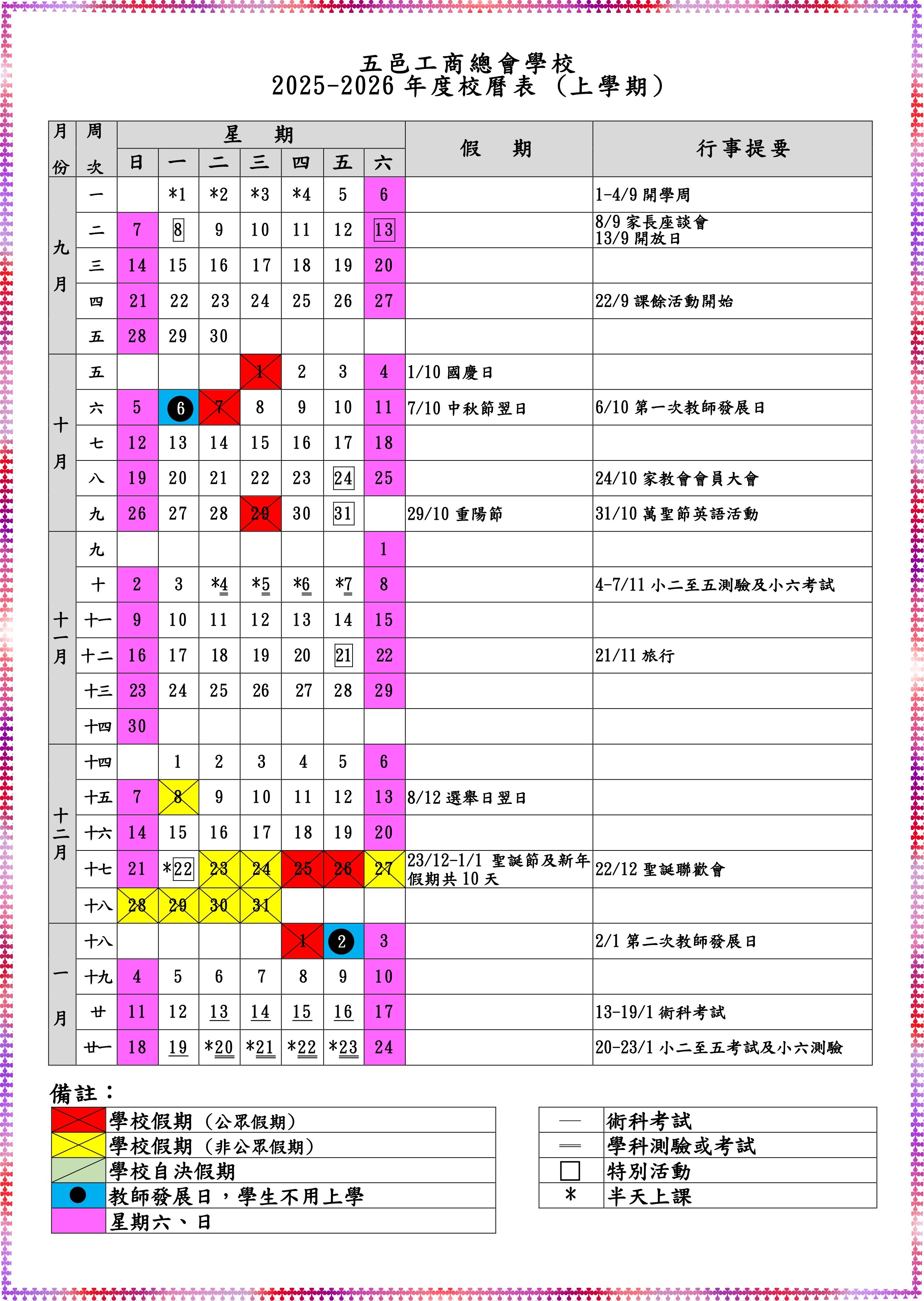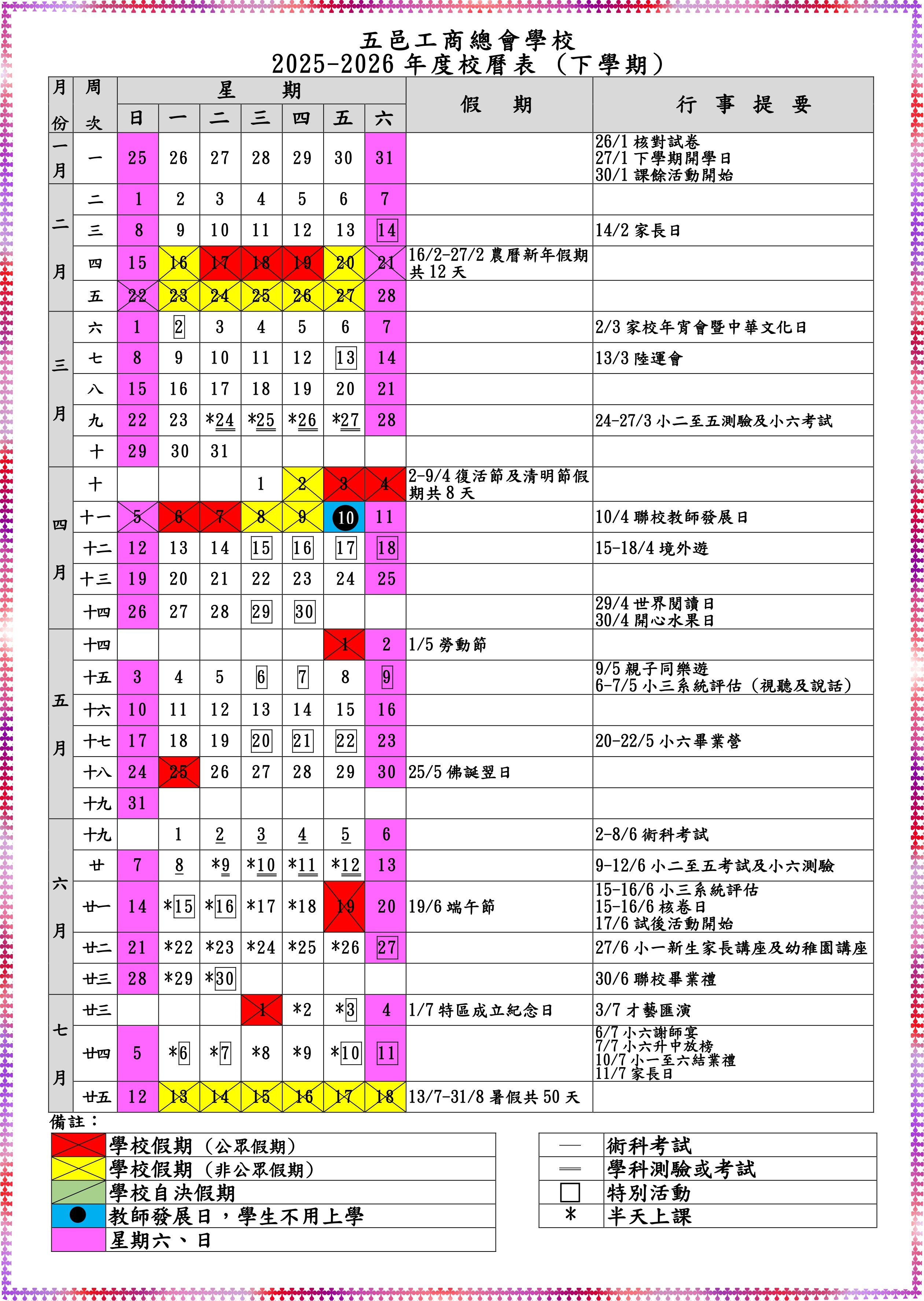 校曆表