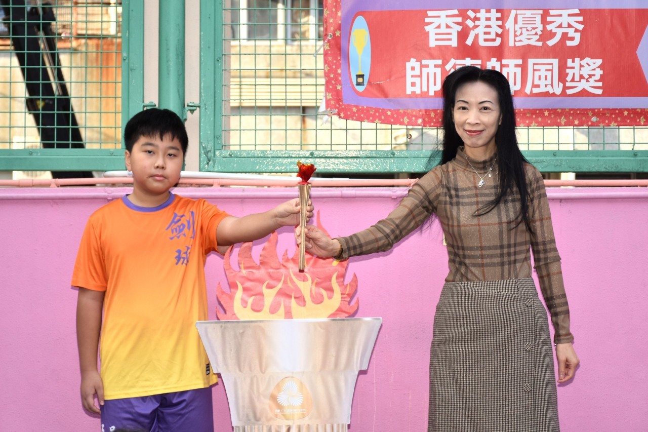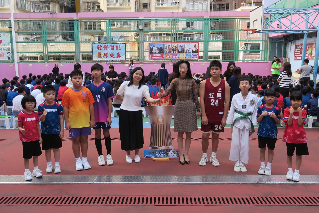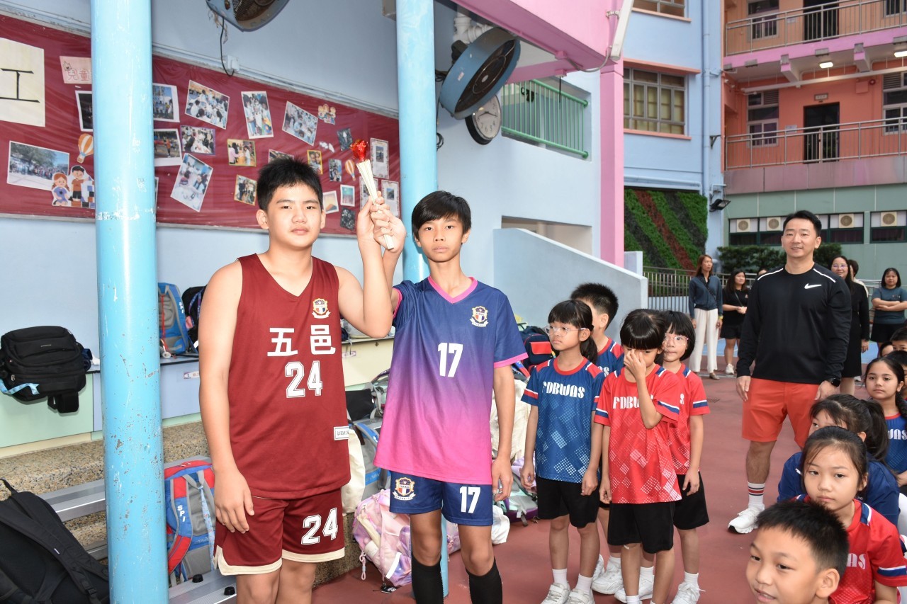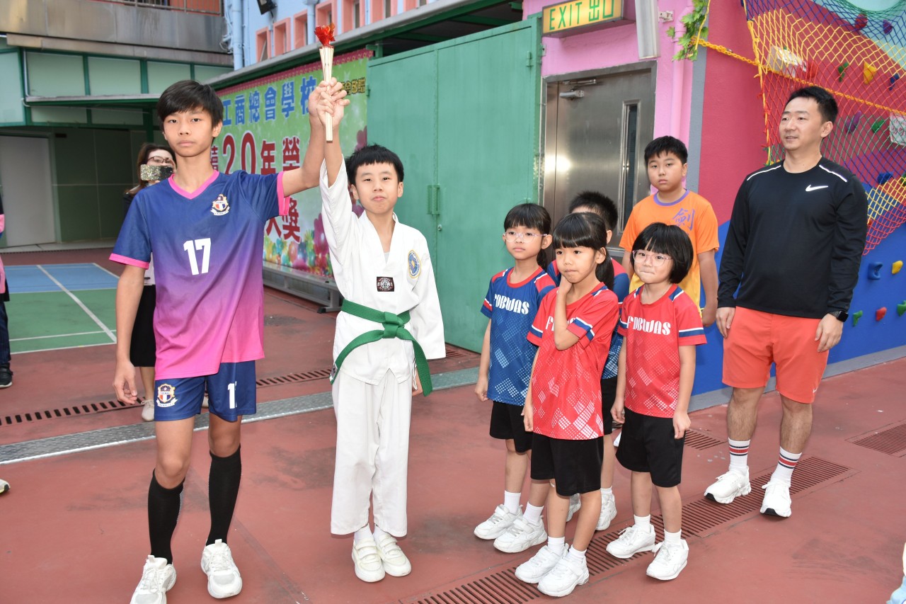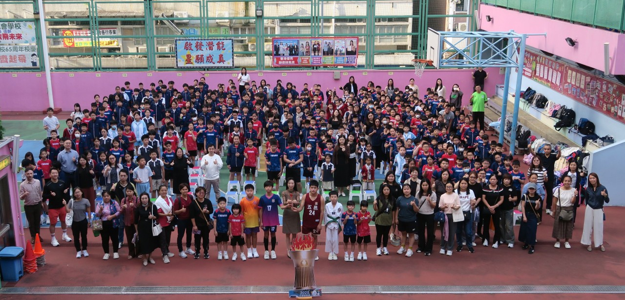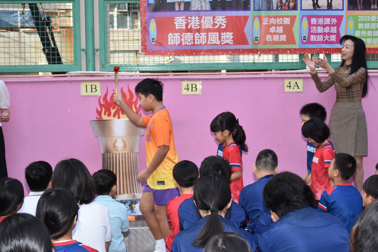 2025-11-10 舉行日期:2025年11月10日活動名稱︰「火炬傳遞」活動 活動詳情︰為響應全運會並傳承體育精神,學校舉辦了「火炬傳遞」活動。劍球、跆拳道、籃球和足球的精英運動員擔任「小小火炬手」,現場氣氛熱鬧非凡!
