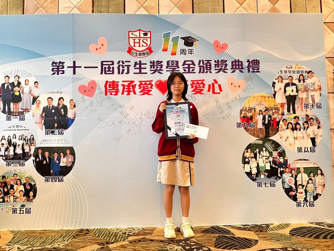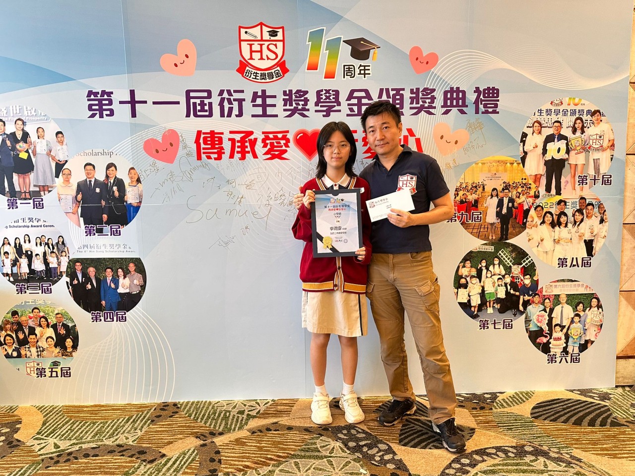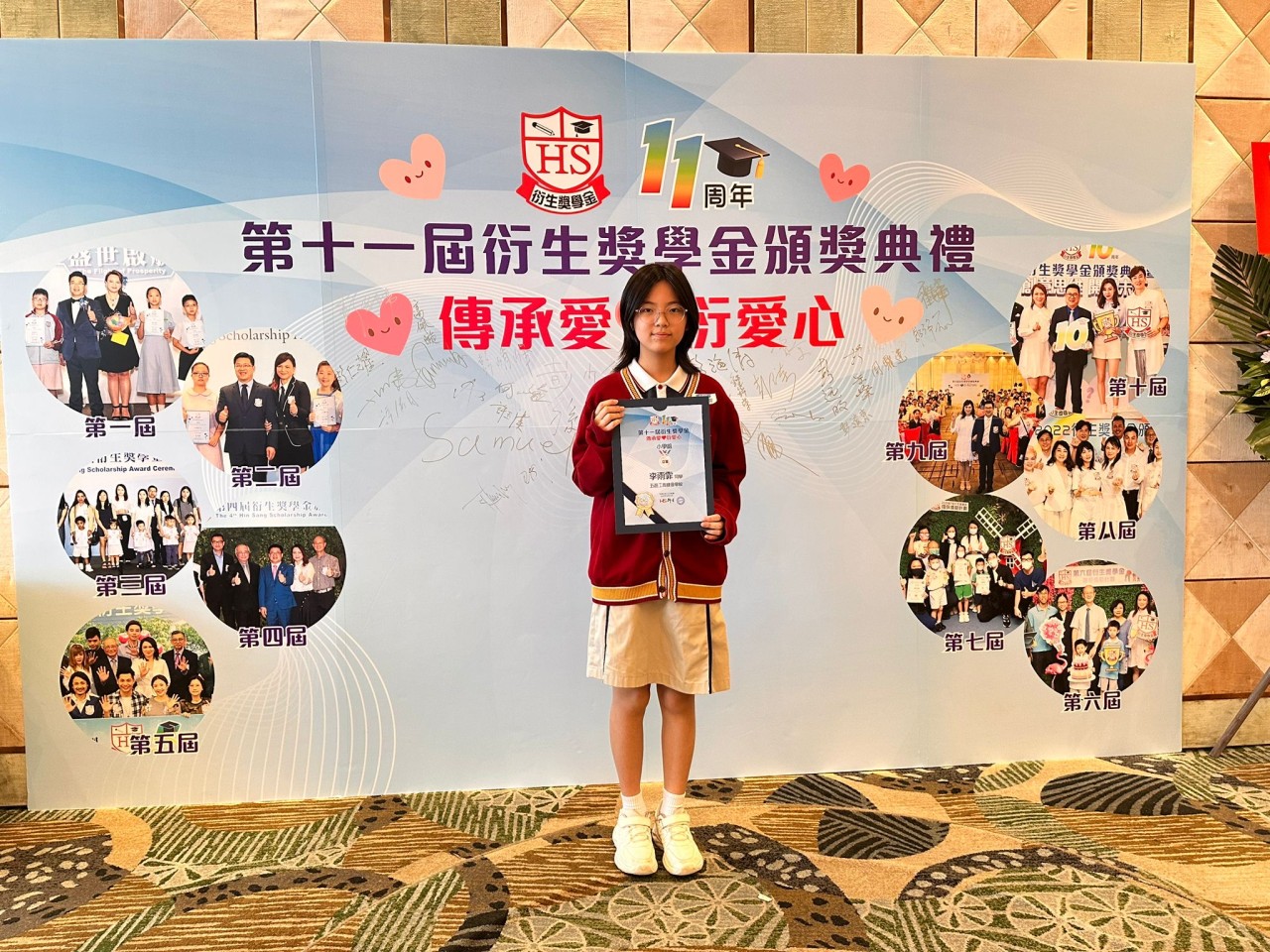 2025-08-23 舉行日期:2025年8月23日活動名稱︰第十一屆衍生獎學金頒獎典禮 活動詳情︰本校6B班的李雨霏同學參加了「第十一屆衍生獎學金」比賽,表現優異,榮獲亞軍。本屆衍生獎學金的主題為「傳承愛‧『衍』愛心」,雨霏以畫作表達對父母深厚的愛意,感謝他們的辛勤養育。