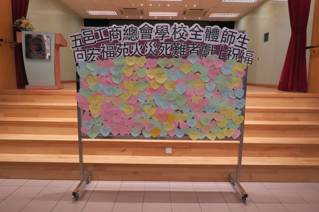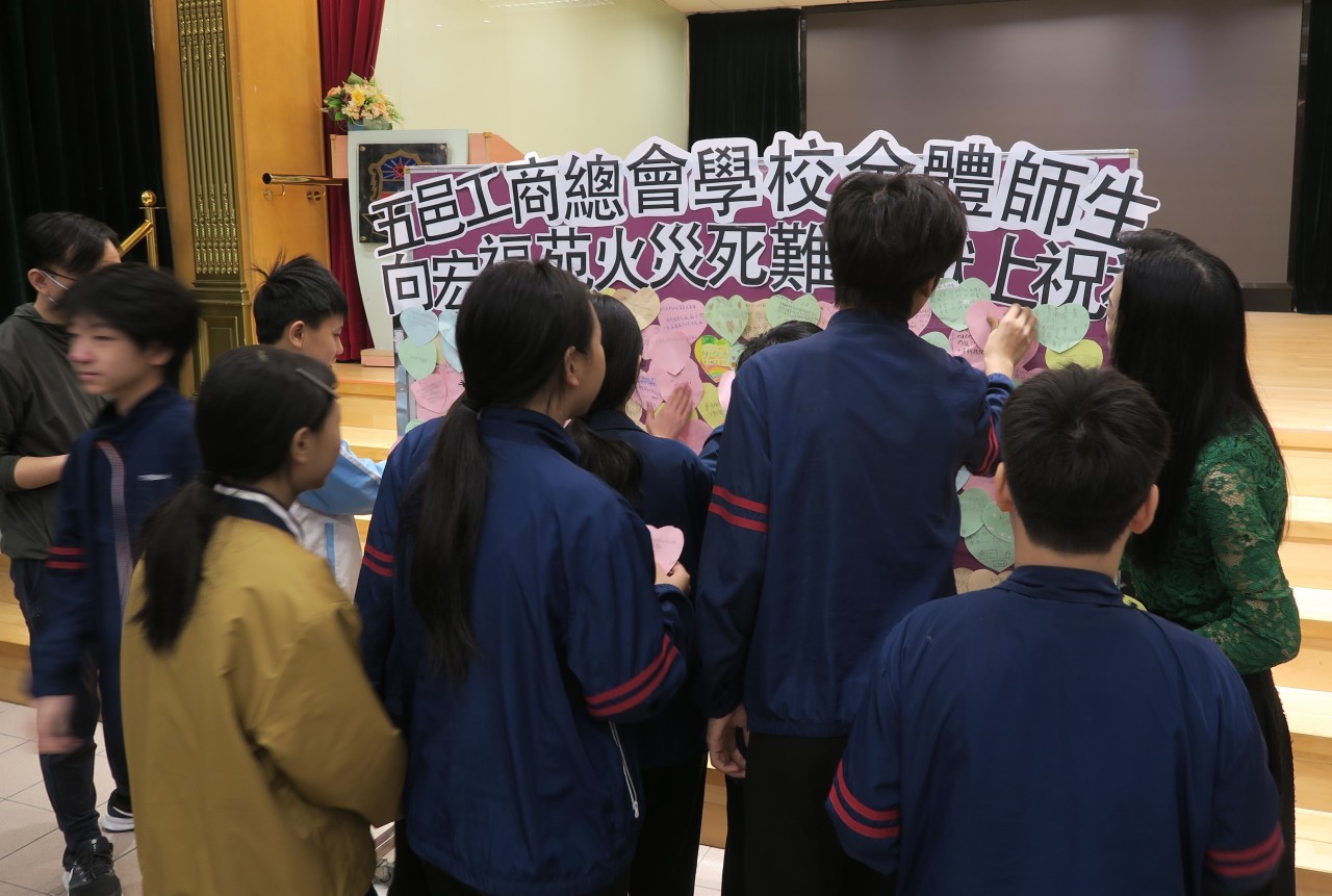 活動詳情︰昨日大埔宏福苑發生五級大火,造成多人傷亡,仍有居民失聯,消息令人難過。本校今日舉行關懷與安全教育活動,讓學生了解事件、調適情緒並提升防災意識!早會時段,校長向學生講解火災情況及防火要點,提醒珍惜生命並提高警覺!各班進行「心意傳遞」行動,學生在心意卡上寫下給災民、家屬及前線救援人員的祝福。心意卡將在禮堂展示,並送往大埔消防局,表達五邑師生的支持與感謝!校長及社工巡視班房,如發現學生情緒不安,會安排適切支援!我們希望學生在活動中學會關懷與同理,為社區送上力量與溫暖!
