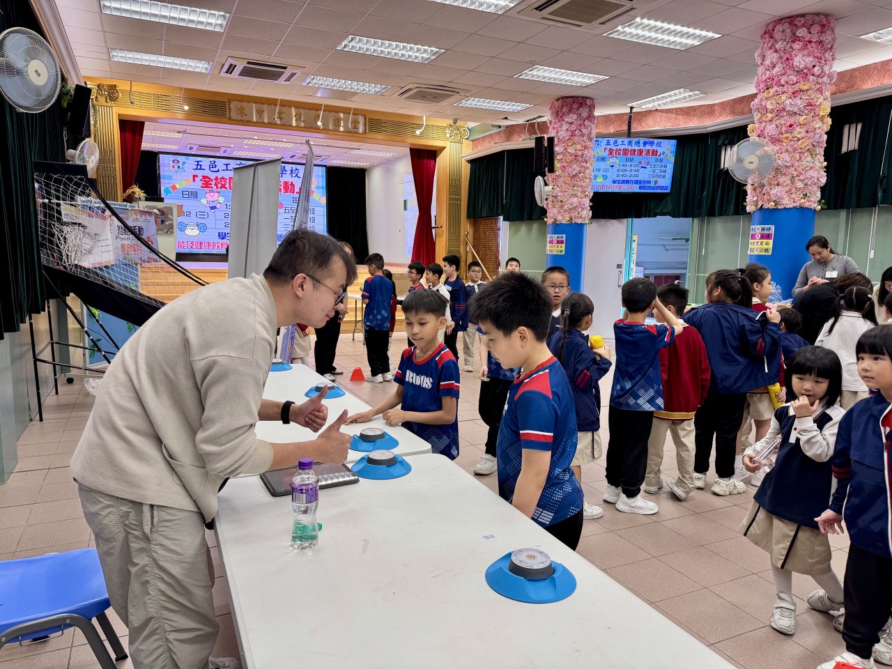 2025-12-03 舉行日期:2025年12月3日活動名稱︰全校園健康攤位 活動詳情︰透過體驗式學習活動,學生認識了適量運動、均衡飲食及精神健康的重要性。在衞生署職員及家長義工協助下,同學在愉快氣氛中增進了健康知識。