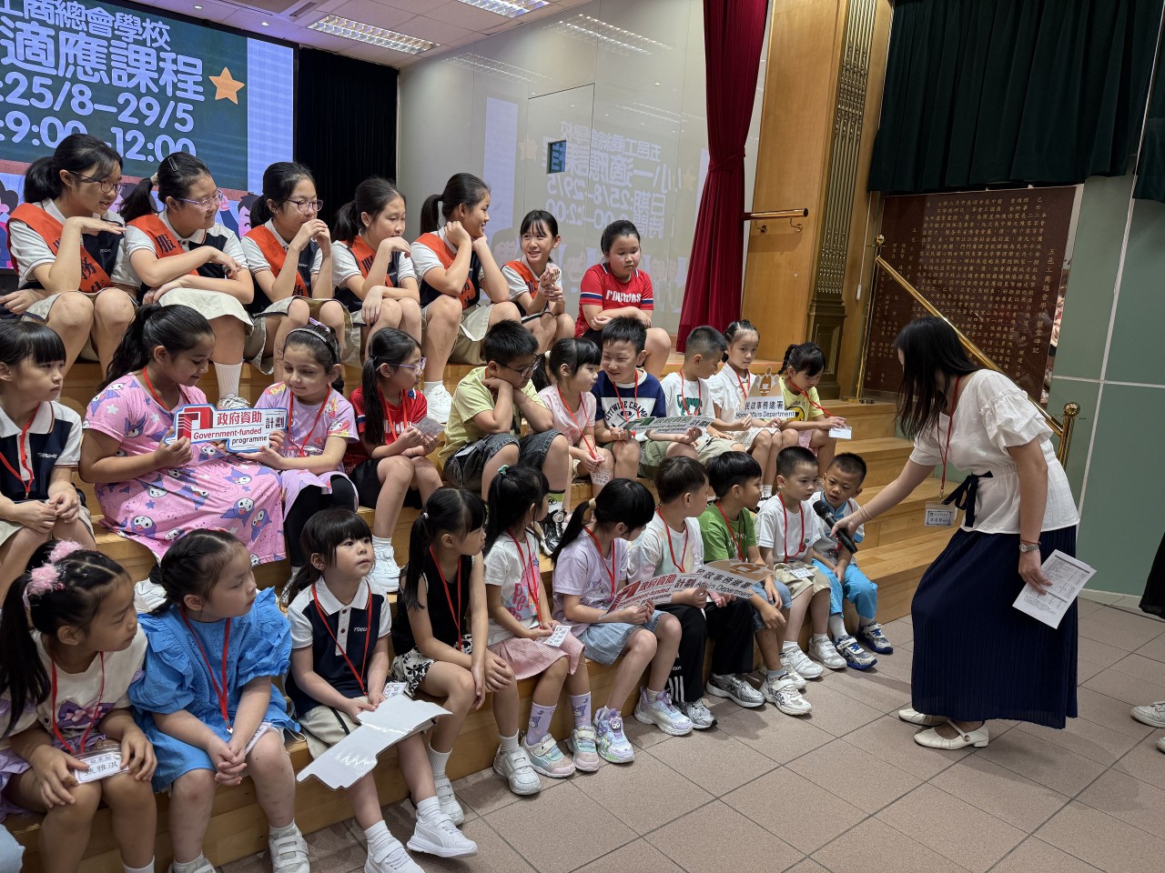 2025-08-29 舉行日期:2025年8月25-29日活動名稱︰小一適應課程 活動詳情︰本校一連五天的小一適應課程已順利舉行。課程以富趣味及輕鬆形式教學,老師們還帶同學參觀校園。宗校長更為每位同學預備禮物,歡迎他們加入五邑大家庭。
