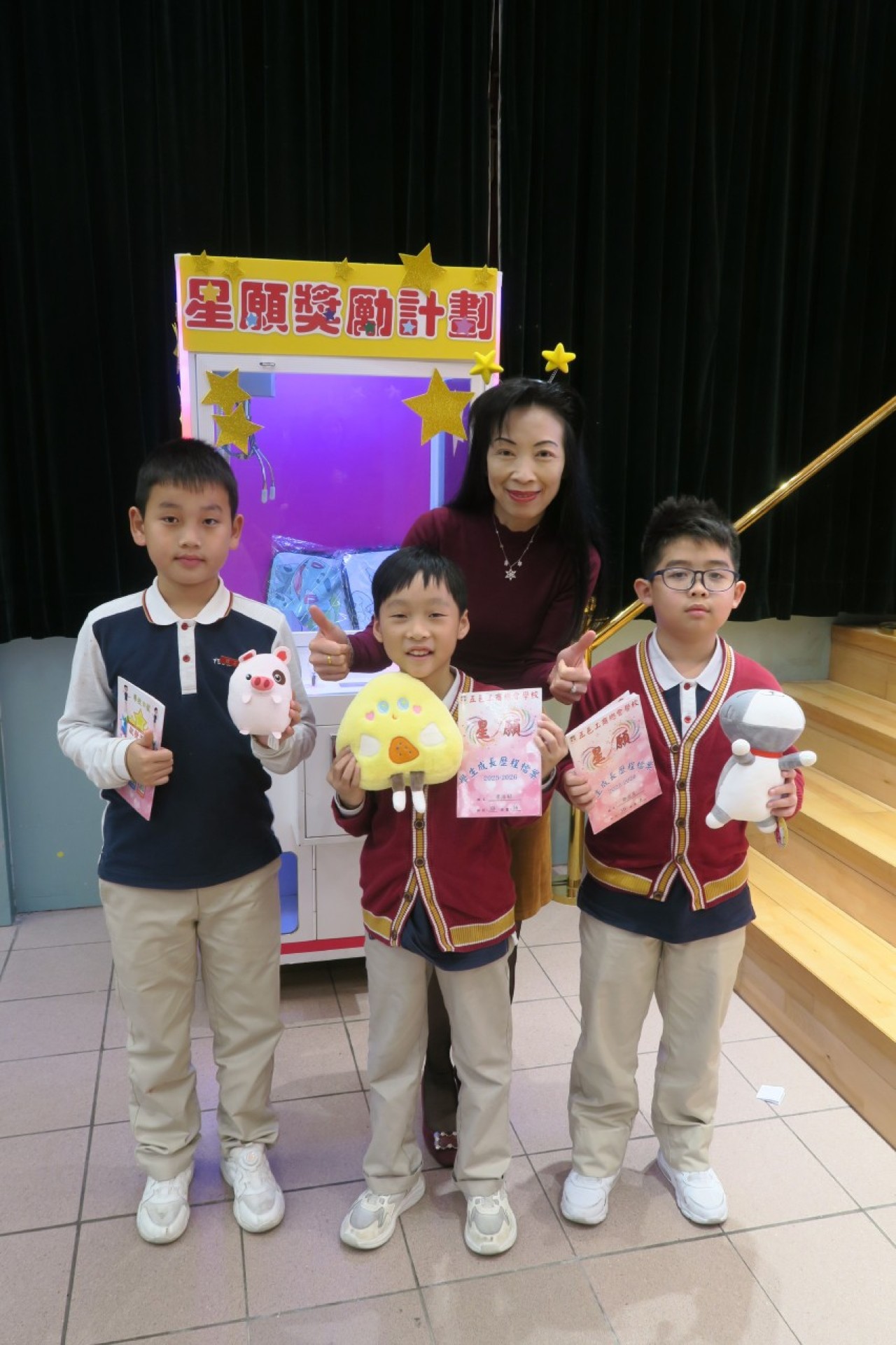 2026-02-05 活動名稱︰星章兌換站 舉行日期:2026年2月4-5日活動詳情︰本校舉行「星章兌換」活動,同學憑著努力所獲得的星章,換取心儀的禮物。換禮物的方式貼近同學的喜好,讓大家在輕鬆愉快的氛圍中穫得禮物。校長更以「神秘嘉賓」身份現身活動現場,與同學合照留念,為活動增添驚喜與溫馨。