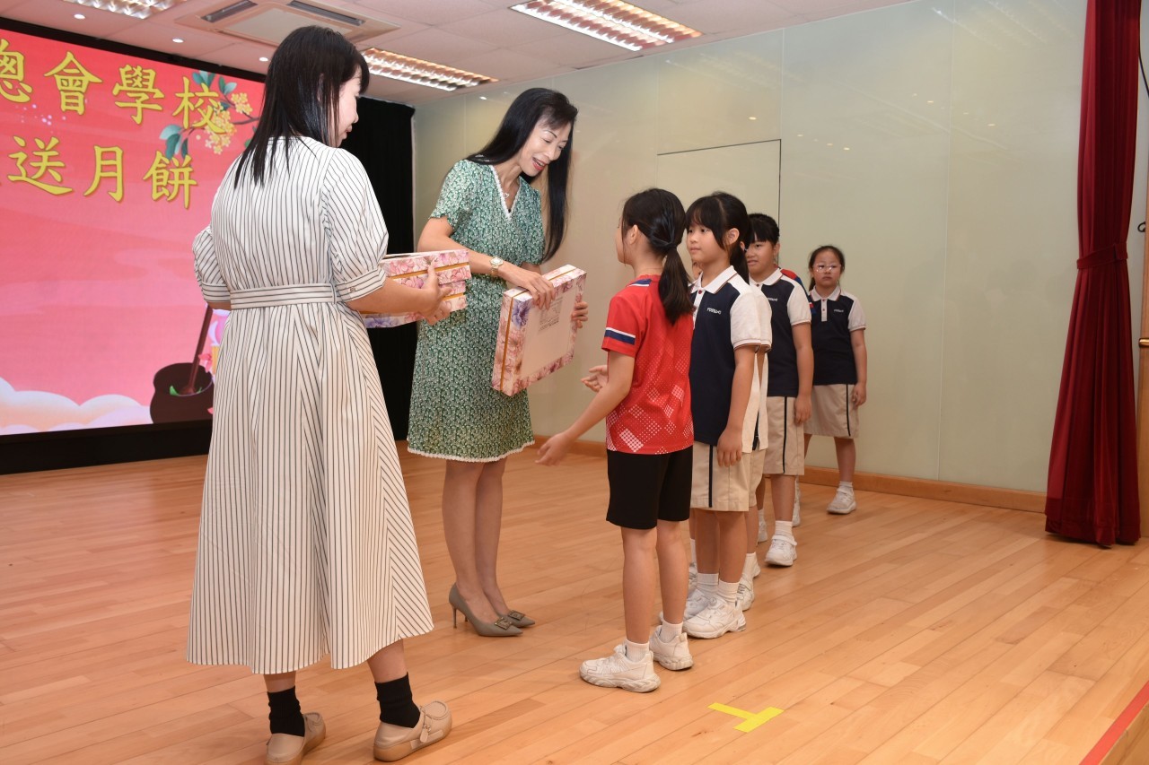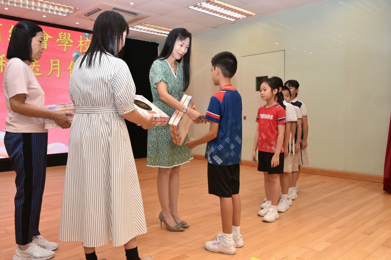 2025-10-02 舉行日期:2025年10月2日活動名稱︰校友中秋送月餅行動 活動詳情︰每年中秋節,本校校友會創會主席陳幗芬女士不忘捐贈月餅給她的學弟學妹,以表達對他們的關愛。這些月餅由宗校長親自頒贈給各班班長,以鼓勵他們為同學服務。