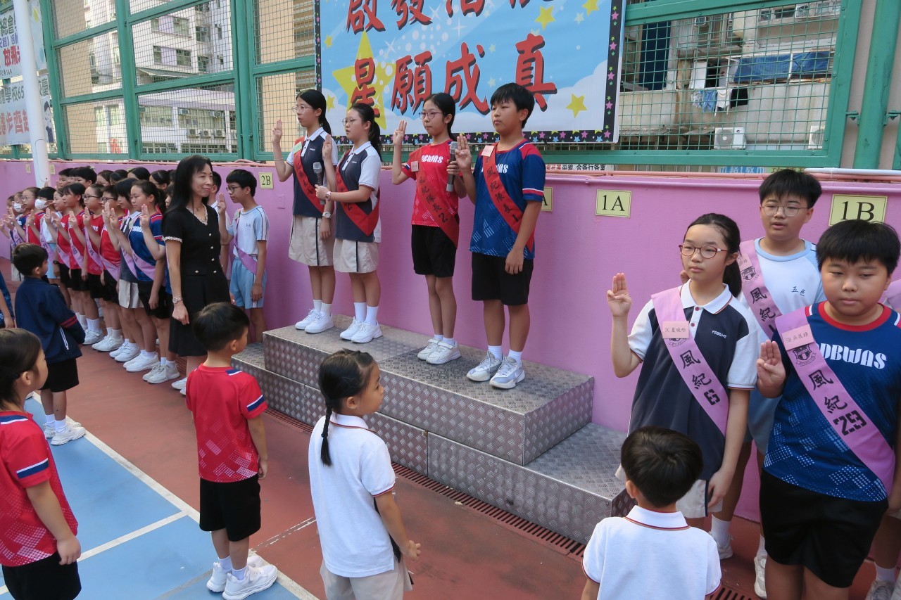 2025-10-03 舉行日期:2025年10月3日活動名稱︰風紀宣誓就職禮 活動詳情︰本校風紀隊共有44人,分為A、B兩隊。每隊設有2位風紀隊長和20位風紀隊員。風紀隊在校內扮演著重要角色,他們每天協助老師維持秩序,指導同學遵守規則,並照顧及幫助有需要的同學。他們堅守崗位,確保大家能在和諧、愉快的環境中學習。